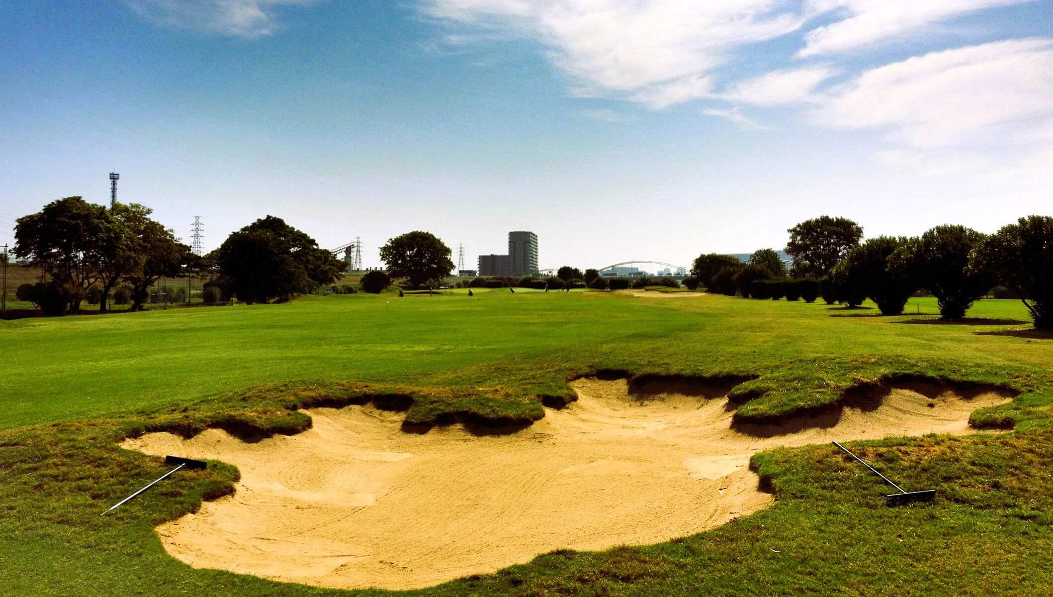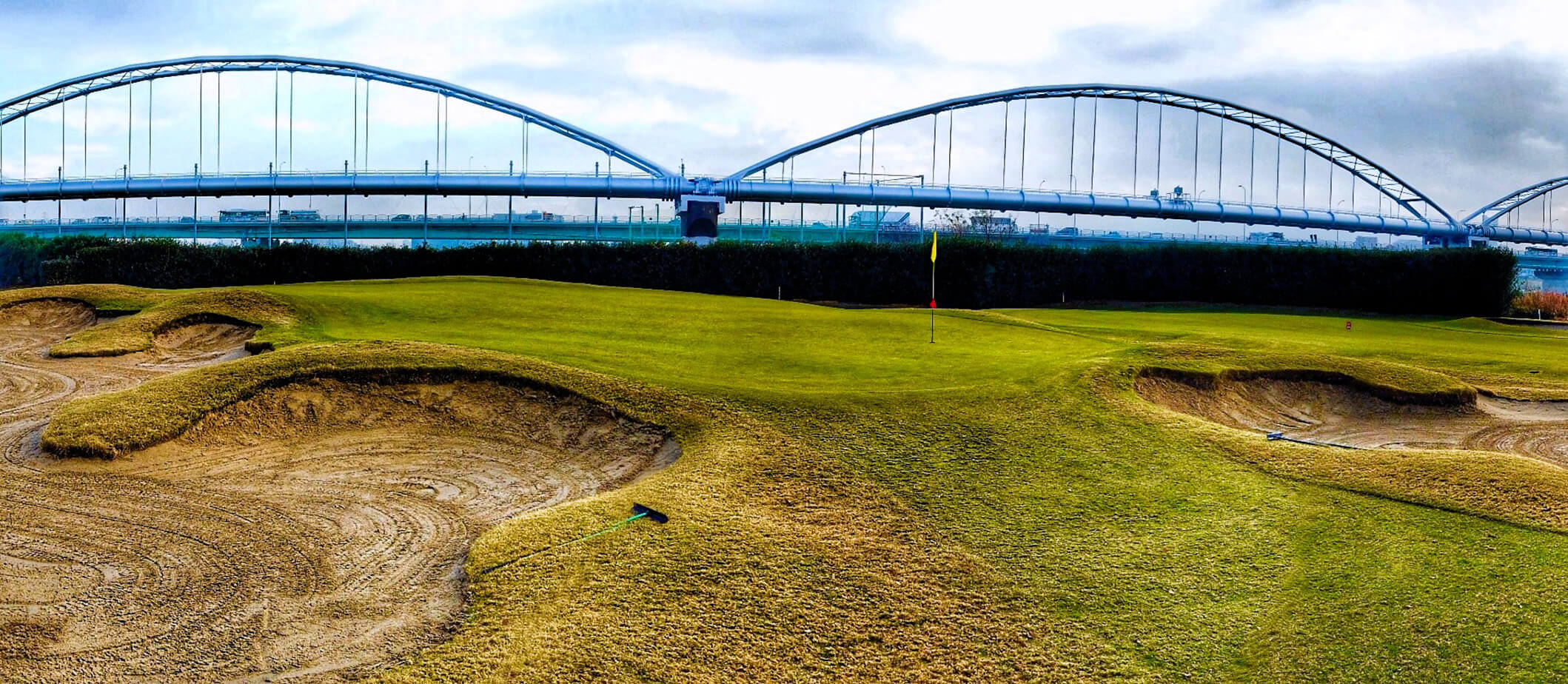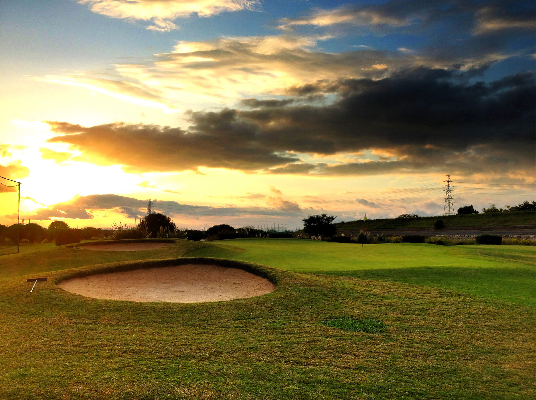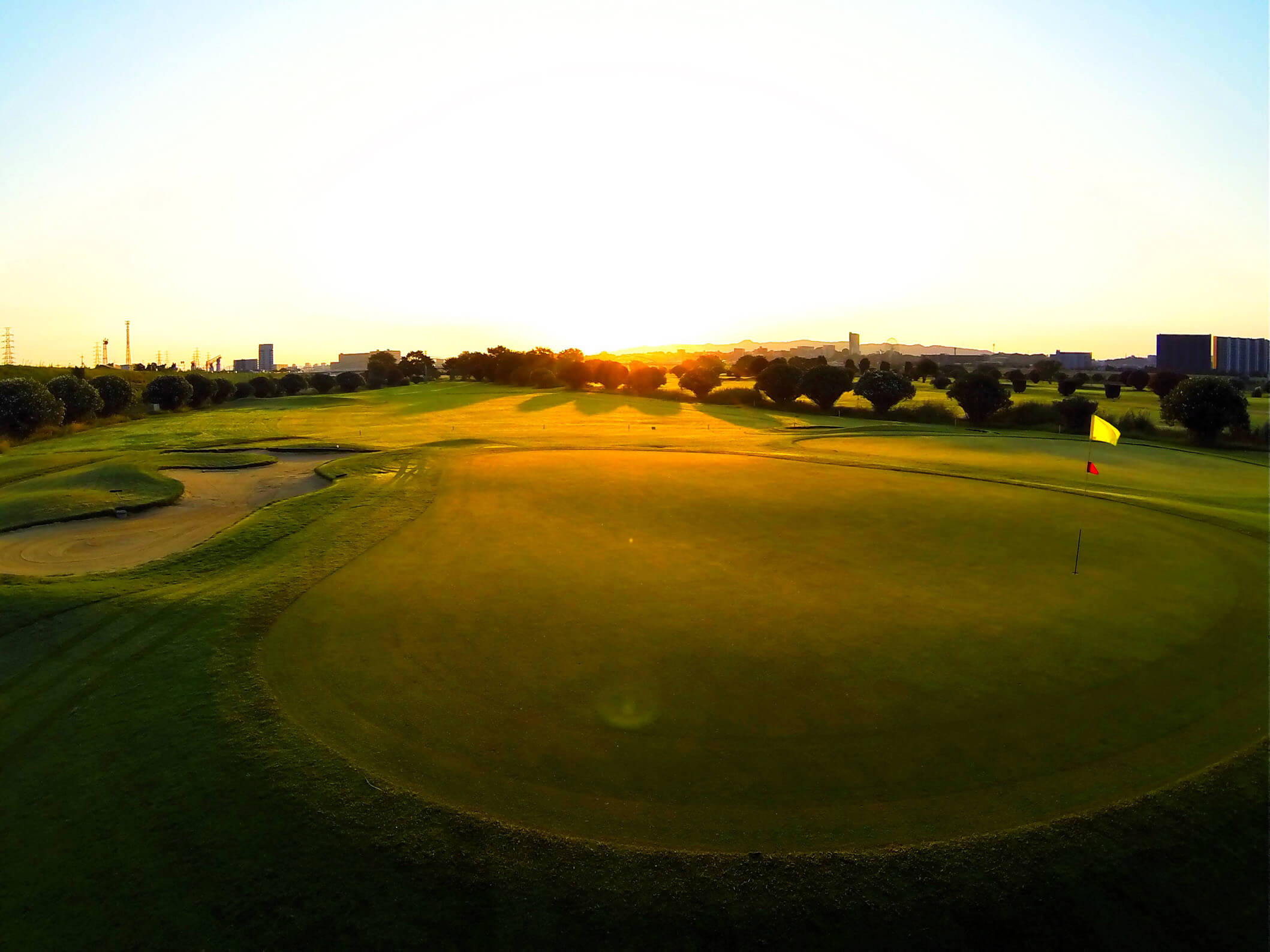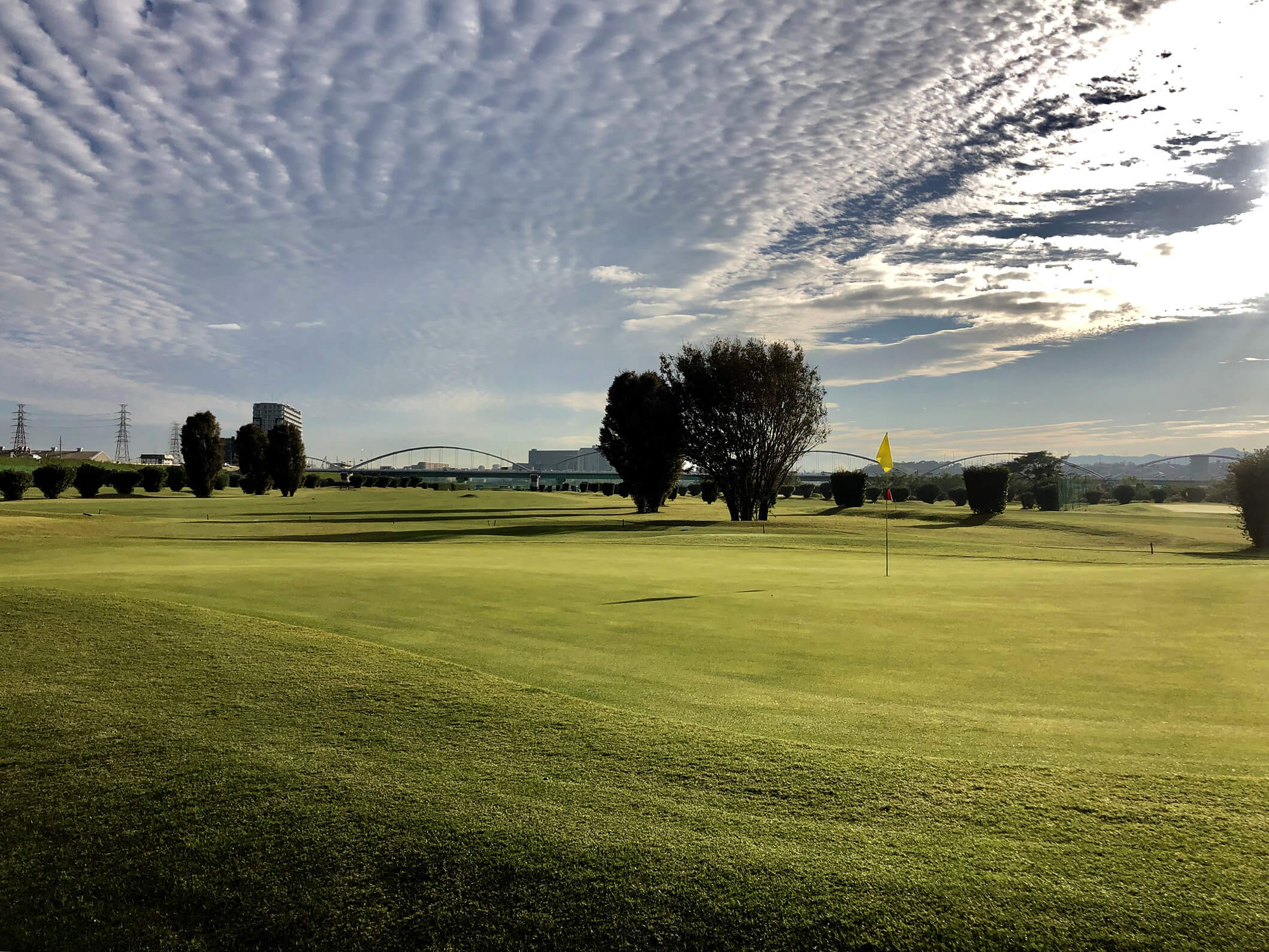 荒野のような巨大なガードバンカーと、高槻で最も難易度が高いローリンググリーンが特徴的なパー4。