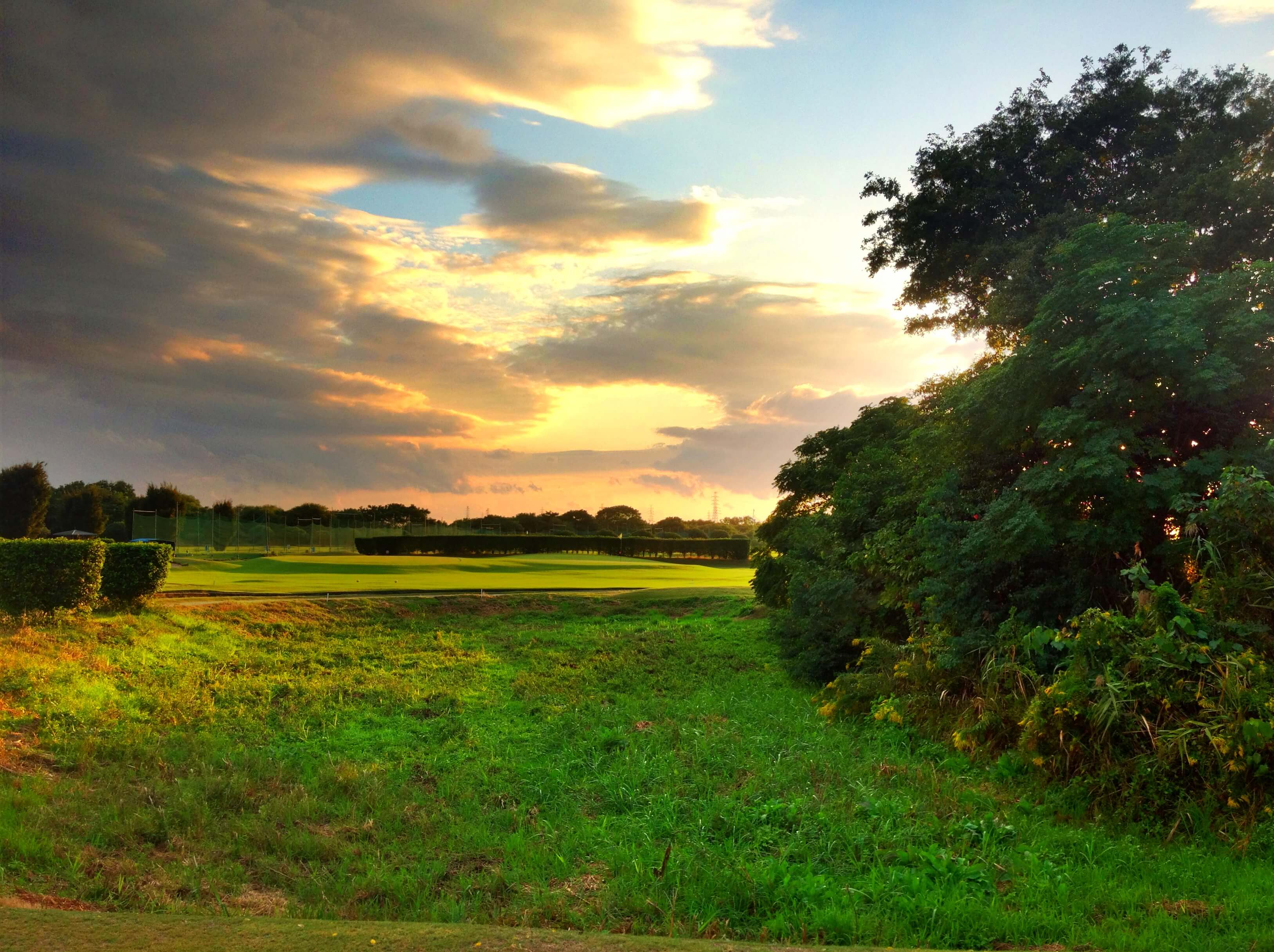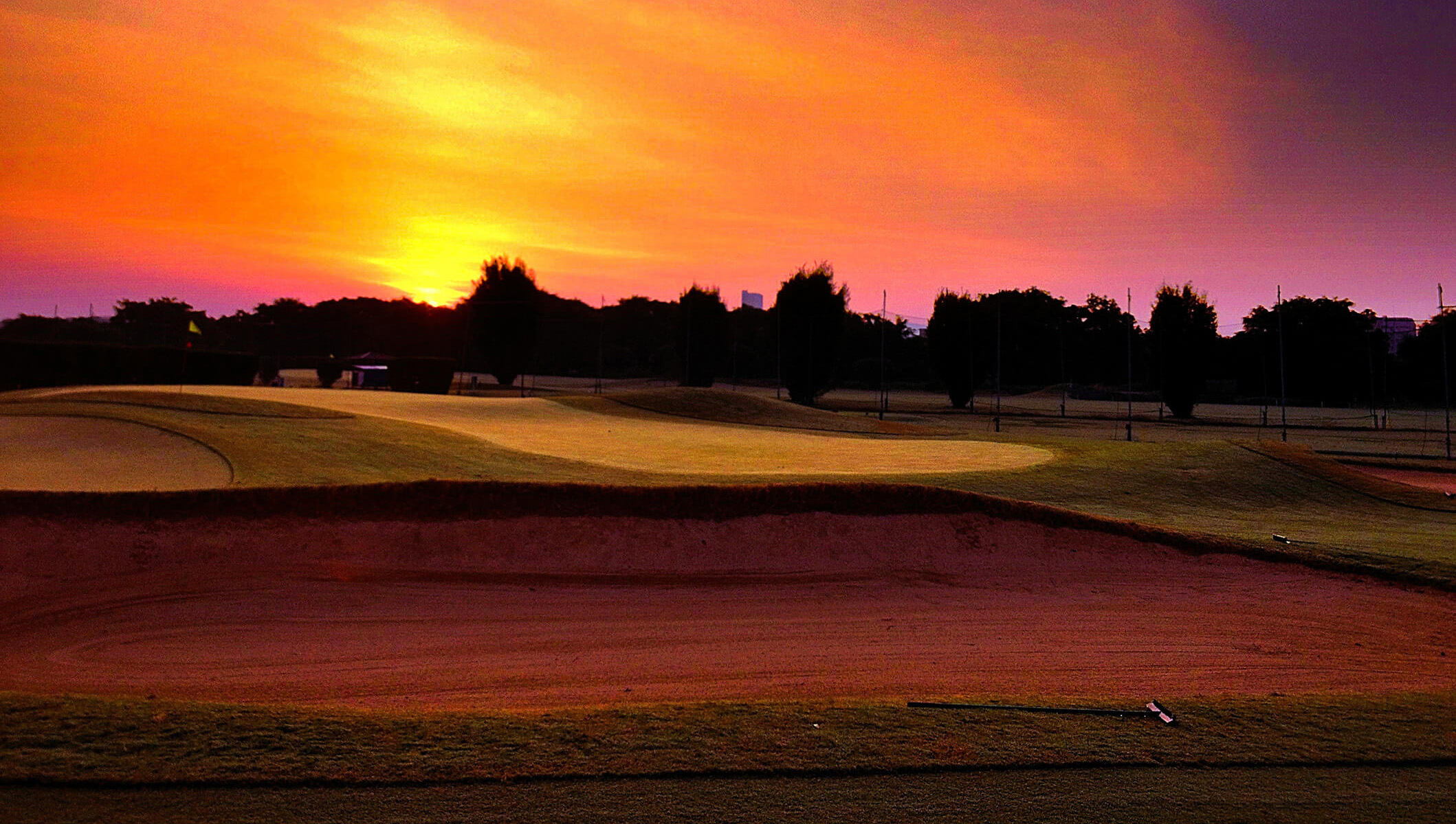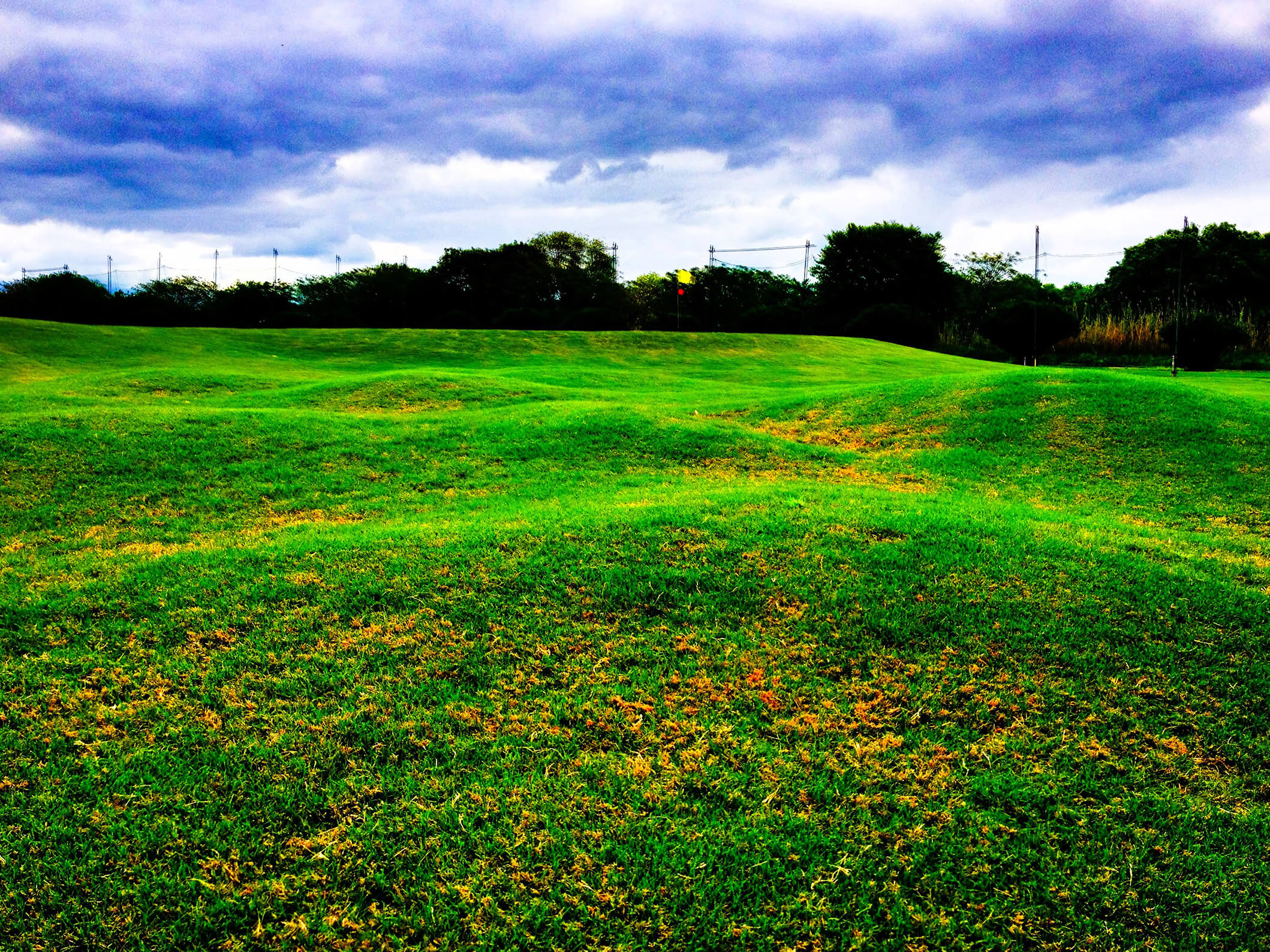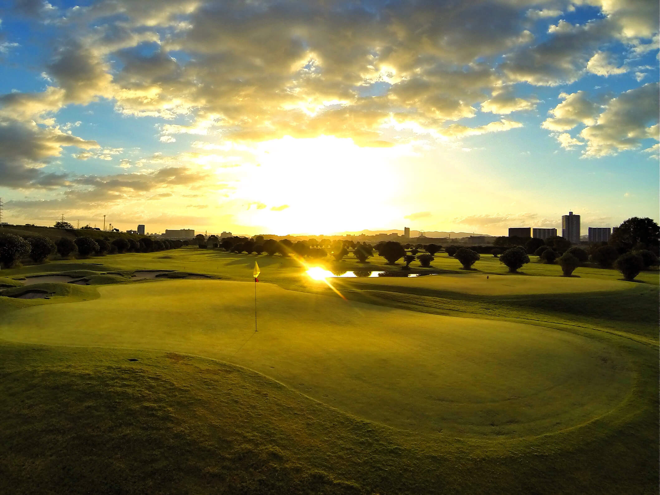 荒野のような巨大なガードバンカーと、高槻で最も難易度が高いローリンググリーンが特徴的なパー4。