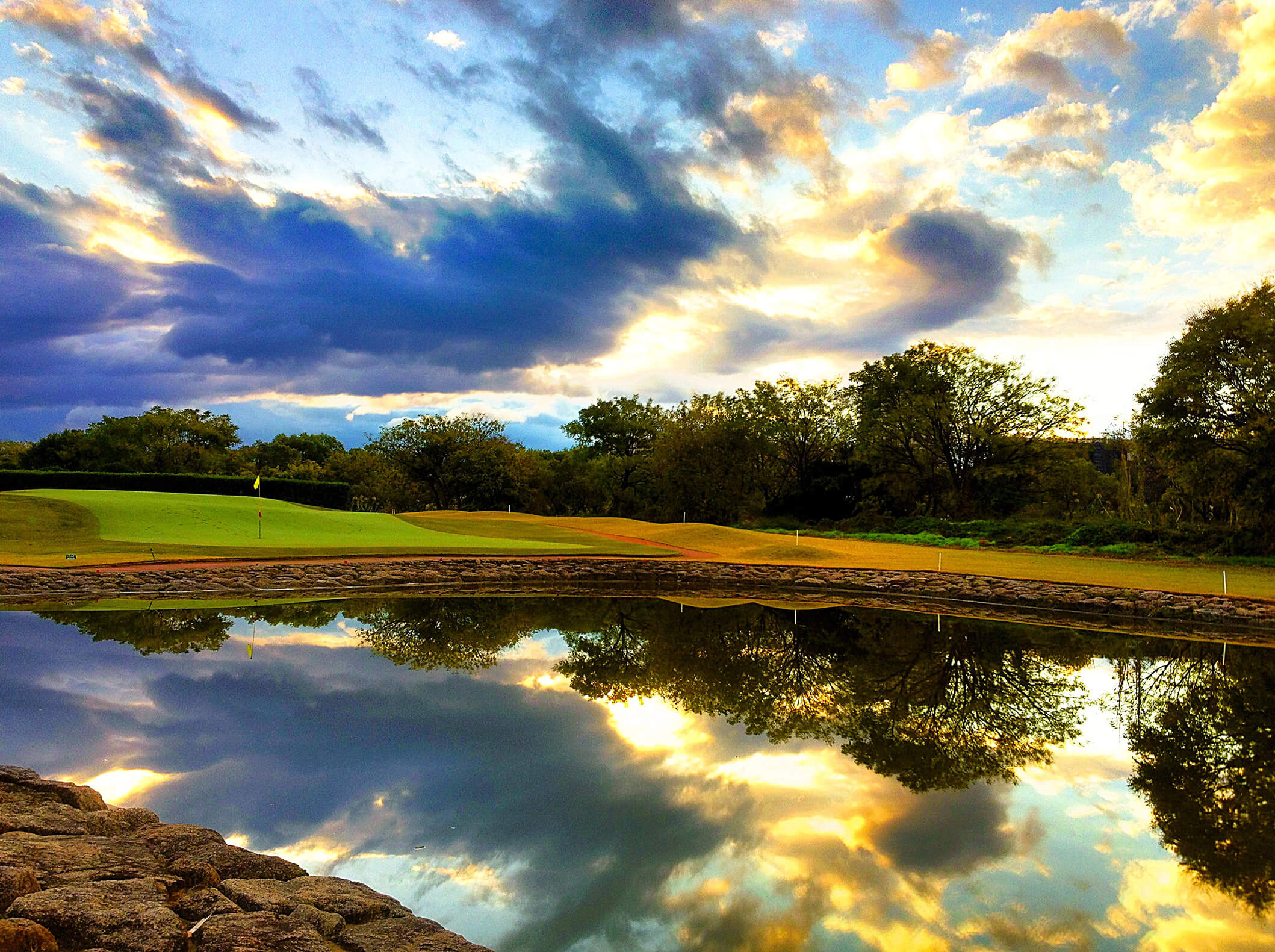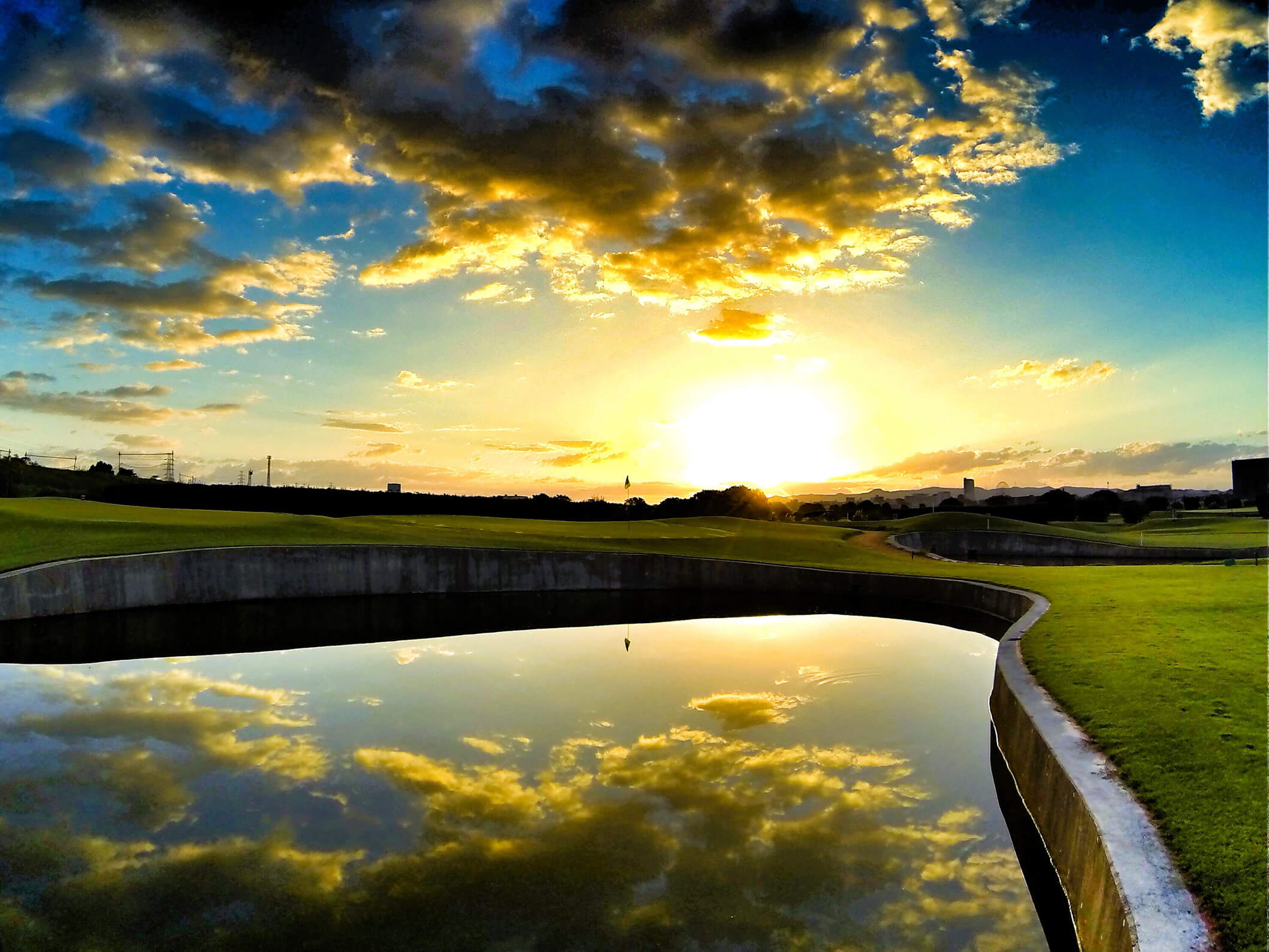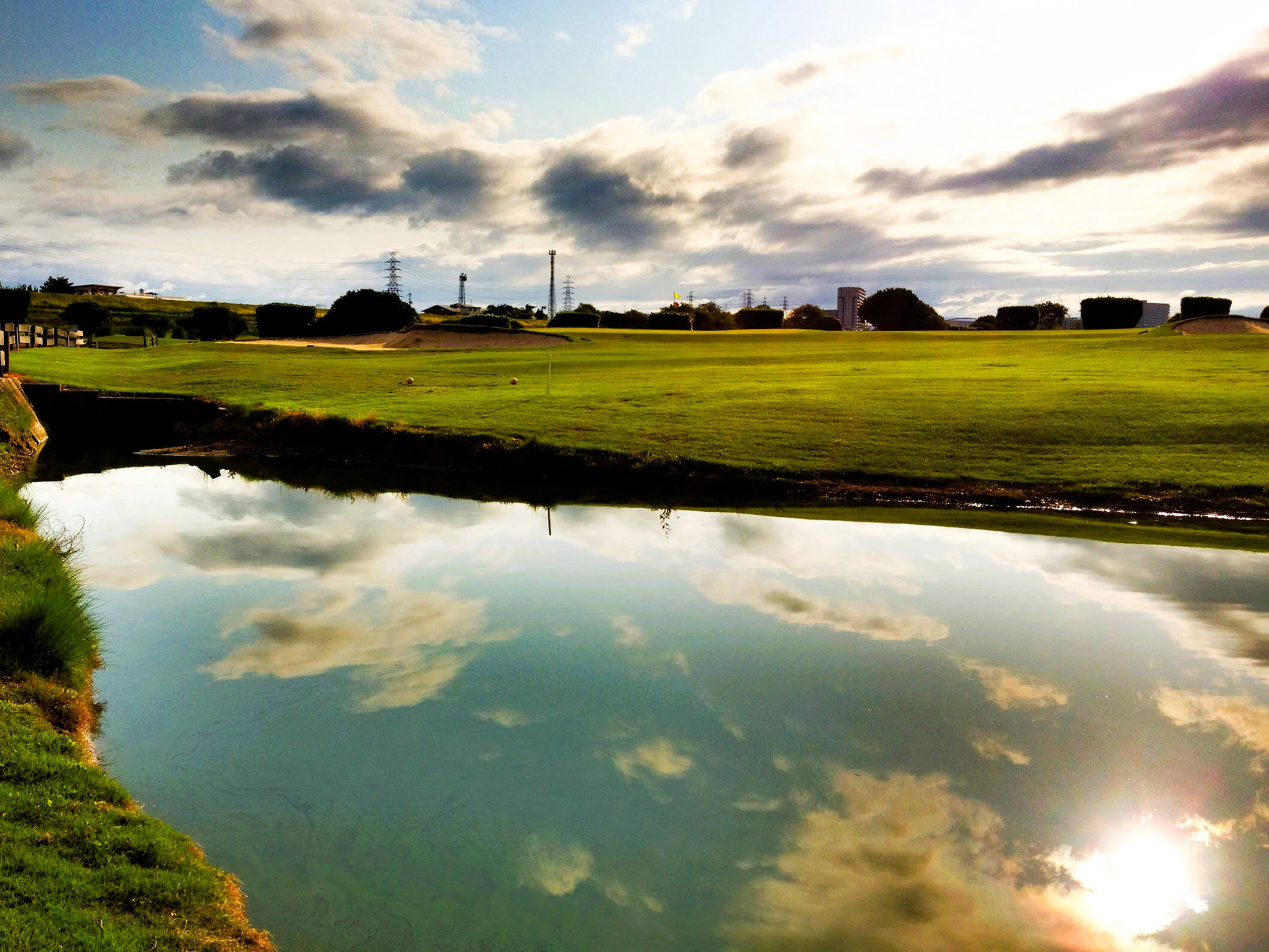 スリリングな池越えのアプローチを体感できるパー4です。