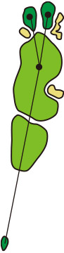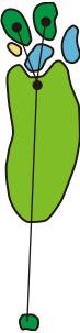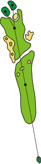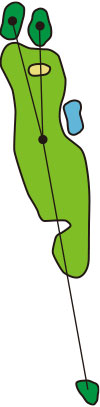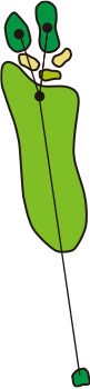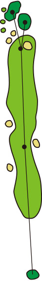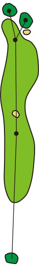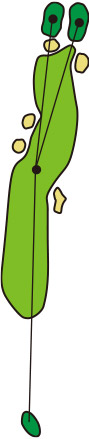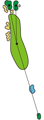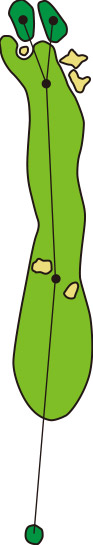 3つのクロスバンカーを避けて、グラスバンカーにガードされた細長いグリーンへ正確なショットが要求されるパー4です。