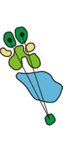 大きな池の上空を舞う風の読みがとても難しいパー3です。